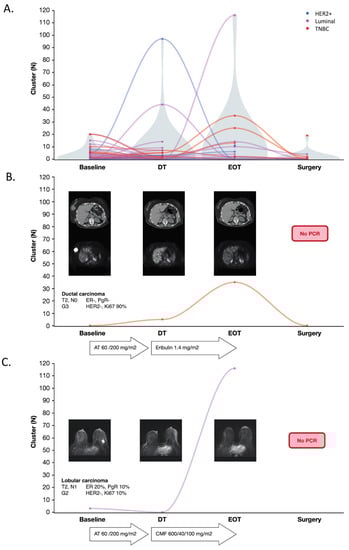 We present two examples of patients who responded to NAC but did not achieve pCR, illustrating the cluster’s dynamics during treatment.