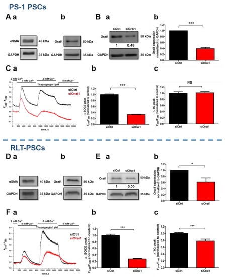 2.1. Functional Expression of Orai1 Channel in PS-1 and RLT Human-Activated PSCs