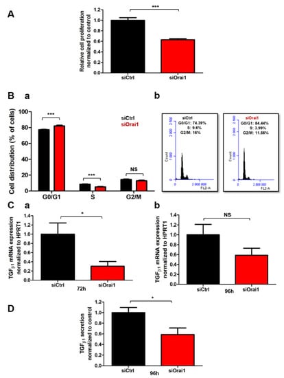 2.2. Orai1 Is Involved in Human-Activated PSC Proliferation and TGFβ1 Secretion