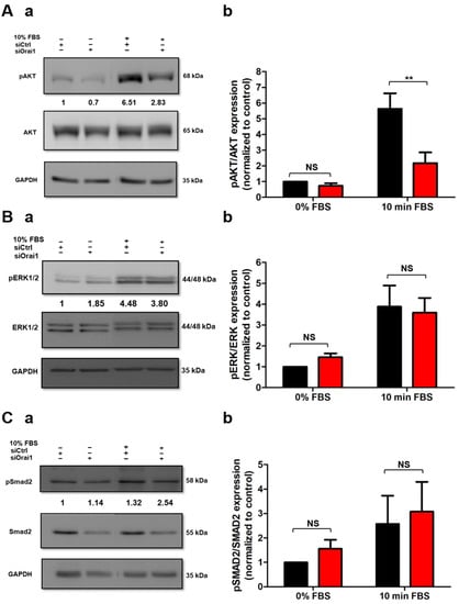 2.3. Orai1 Regulates the Activation of AKT But Not of ERK1/2 and SMAD2 in Human-Activated PSCs
