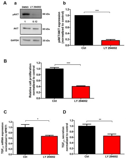 2.4. AKT Signaling Pathway Mediates Human-Activated PSC Proliferation and TGFβ1 Secretion