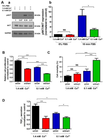 2.7. Ca2+ Entry Through Orai1 Regulates AKT-Dependent Proliferation and TGFβ1 Secretion in PS-1 Human-Activated PSCs