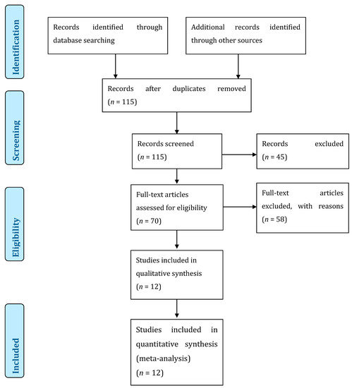 - Moher, D.; Liberati, A.; Tetzlaff, J.; Altman, D.G.; Group, P. Preferred reporting items for systematic reviews and meta-analyses: The PRISMA Statement. Open Med. 2009, 3, e123–e130. [Google Scholar]