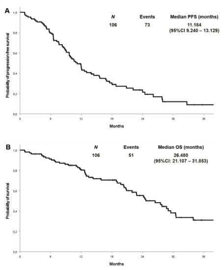 - Clinical course: starting date of first-line treatment, PS, best response, suspension of therapy and motivation, progression of the disease with relative sites, local treatments (radiotherapy, surgery or other), site and result of biopsy at the time of progression (liquid and /or tissue). Similar data were collected for second and third lines of therapy;