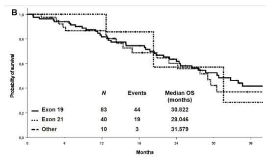 - Rachiglio, A.M.; Fenizia, F.; Piccirillo, M.C.; Galetta, D.; Crinò, L.; Vincenzi, B.; Barletta, E.; Pinto, C.; Ferraù, F.; Lambiase, M.; et al. The Presence of Concomitant Mutations Affects the Activity of EGFR Tyrosine Kinase Inhibitors in EGFR-Mutant Non-Small Cell Lung Cancer (NSCLC) Patients. Cancers 2019, 11, 341. [Google Scholar] [CrossRef]