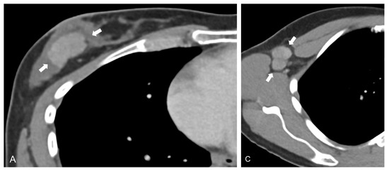 - Zhang, X.; Zheng, C.; Yang, Z.; Cheng, Z.; Deng, H.; Chen, M.; Duan, X.; Mao, J.; Shen, J. Axillary Sentinel Lymph Nodes in Breast Cancer: Quantitative Evaluation at Dual-Energy CT. Radiology 2018, 289, 337–346. [Google Scholar] [CrossRef]