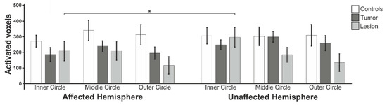- Liu, W.-C.; Feldman, S.C.; Schulder, M.; Kalnin, A.J.; Holodny, A.I.; Zimmerman, A.; Sinensky, R.; Rao, S. The effect of tumour type and distance on activation in the motor cortex. Neuroradiology 2005, 47, 813–819. [Google Scholar] [CrossRef]