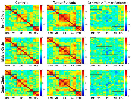 - Esposito, R.; Mattei, P.A.; Briganti, C.; Romani, G.L.; Tartaro, A.; Caulo, M. Modifications of default-mode network connectivity in patients with cerebral glioma. PLoS ONE 2012, 7, e40231. [Google Scholar] [CrossRef]
