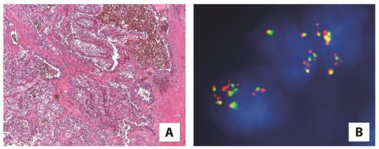 - Argani, P.; Zhong, M.; Reuter, V.E.; Fallon, J.T.; Epstein, J.I.; Netto, G.J.; Antonescu, C.R. TFE3-Fusion Variant Analysis Defines Specific Clinicopathologic Associations Among Xp11 Translocation Cancers. Am. J. Surg. Pathol. 2016, 40, 723–737. [Google Scholar] [CrossRef] [PubMed]
