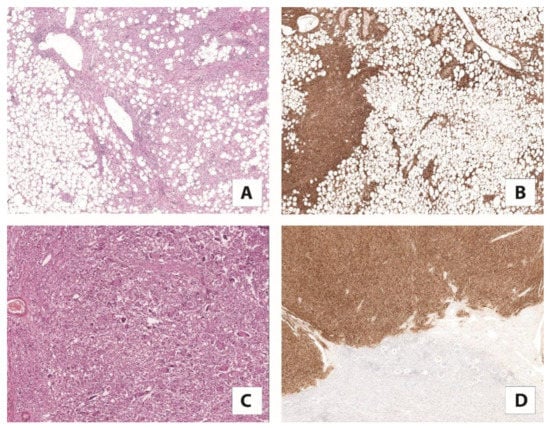 - Calio, A.; Harada, S.; Brunelli, M.; Pedron, S.; Segala, D.; Portillo, S.C.; Magi-Galluzzi, C.; Netto, G.J.; Mackinnon, A.C.; Martignoni, G. TFEB rearranged renal cell carcinoma. A clinicopathologic and molecular study of 13 cases. Tumors harboring MALAT1-TFE, B.; ACTB-TFE, B.; and the novel NEAT1-TFEB translocations constantly express PDL1. Mod. Pathol. 2020, 34, 842–850. [Google Scholar] [CrossRef]