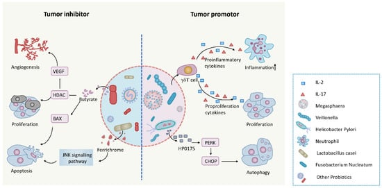 | Function | Microorganism | Type of Cancer | Mechanism | References |