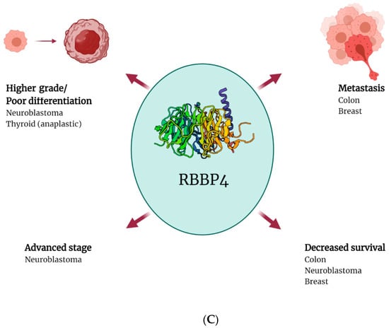 The RBBP4 protein is overexpressed in papillary, follicular, and anaplastic thyroid carcinoma, with the highest expression in anaplastic malignancy. Increased levels of RBBP4 promote tumour growth and mirror the increased nuclear factor κB (NFκΒ) activity in these tumours [71].