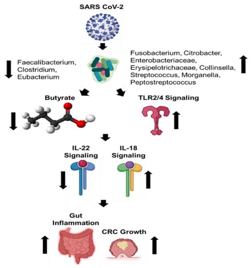 3. SARS-CoV-2 Induced Gut Microbiome Dysbiosis and CRC