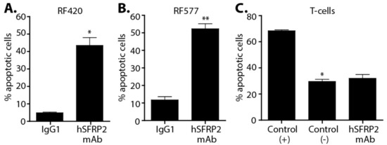 3.9. Treatment with hSFRP2 mAb Increases the Apoptosis of Tumor Cells, but Has No Effect on T-Cell Apoptosis