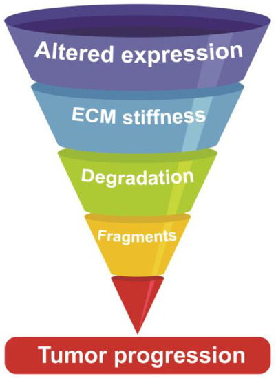 - Walker, C.; Mojares, E.; del Río Hernández, A. Role of Extracellular Matrix in Development and Cancer Progression. Int. J. Mol. Sci. 2018, 19, 3028. [Google Scholar] [CrossRef]
