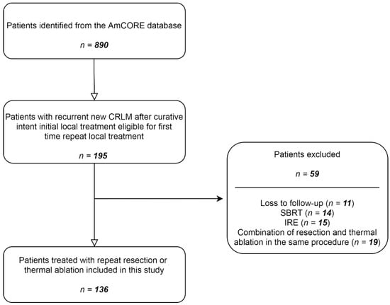 - Dijkstra, M.; Nieuwenhuizen, S.; Puijk, R.S.; Geboers, B.; Timmer, F.E.F.; Schouten, E.A.C.; Scheffer, H.J.; de Vries, J.J.J.; Ket, J.C.F.; Versteeg, K.S.; et al. The Role of Neoadjuvant Chemotherapy in Repeat Local Treatment of Recurrent Colorectal Liver Metastases: A Systematic Review and Meta-Analysis. Cancers 2021, 13, 378. [Google Scholar] [CrossRef]
