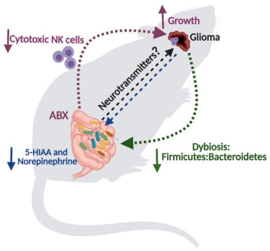 - Patrizz, A.; Dono, A.; Zorofchian, S.; Hines, G.; Takayasu, T.; Husein, N.; Otani, Y.; Arevalo, O.; Choi, H.A.; Savarraj, J.; et al. Glioma and temozolomide induced alterations in gut microbiome. Sci. Rep. 2020, 10, 21002. [Google Scholar] [CrossRef] [PubMed]