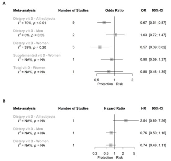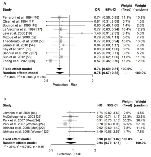 3.3. Meta-Analyses of Prospective Cohort Studies