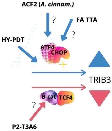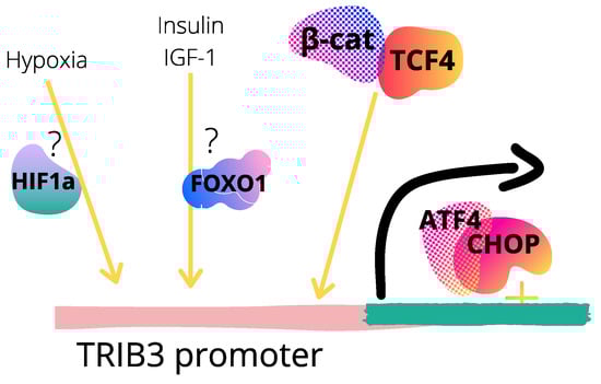 - Hua, F.; Shang, S.; Yang, Y.-W.; Zhang, H.-Z.; Xu, T.-L.; Yu, J.-J.; Zhou, D.-D.; Cui, B.; Li, K.; Lv, X.-X.; et al. TRIB3 Interacts With β-Catenin and TCF4 to Increase Stem Cell Features of Colorectal Cancer Stem Cells and Tumorigenesis. Gastroenterology 2019, 156, 708–721.e15. [Google Scholar] [CrossRef]