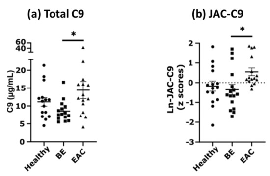3.3. Total C9 and JAC-C9 Are Elevated in EAC Patient Serum