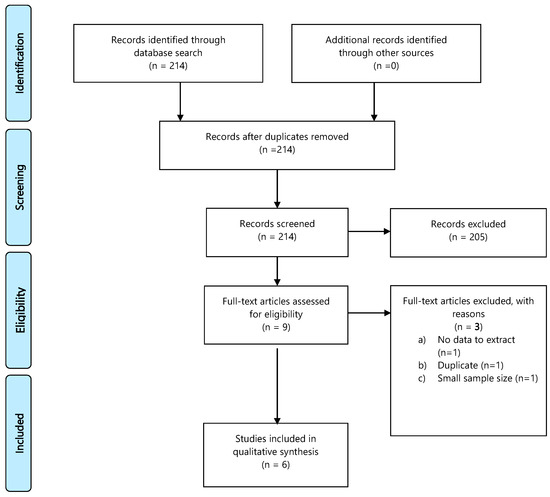 - Moher, D.; Liberati, A.; Tetzlaff, J.; Altman, D.G.; The PRISMA Group. Preferred reporting items for systematic reviews and meta-analyses: The PRISMA statement. PLoS Med. 2009, 6, e1000097. [Google Scholar] [CrossRef]