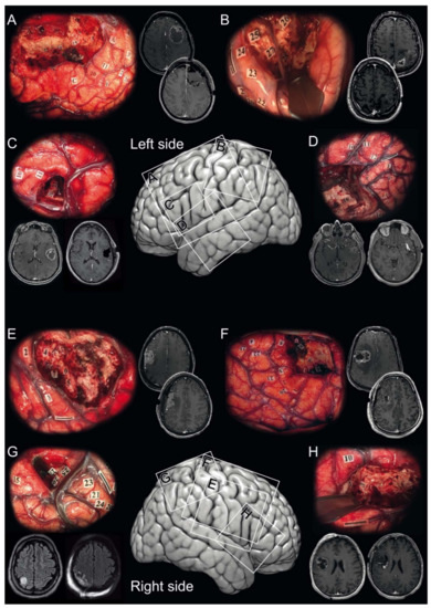 - Pallud, J.; Roux, A.; Mellerio, C. Glioma resection unmasks eloquent brain areas. World Neurosurg. 2019, 132, 251–252. [Google Scholar] [CrossRef]