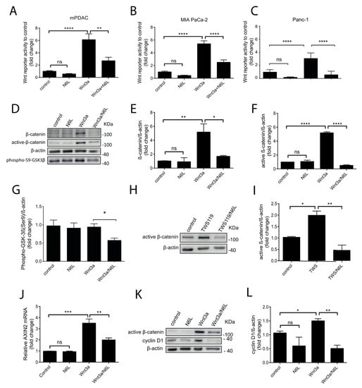 - Makena, M.R.; Gatla, H.; Verlekar, D.; Sukhavasi, S.; Pandey, M.K.; Pramanik, K.C. Wnt/β-Catenin Signaling: The Culprit in Pancreatic Carcinogenesis and Therapeutic Resistance. Int. J. Mol. Sci. 2019, 20, 4242. [Google Scholar] [CrossRef]