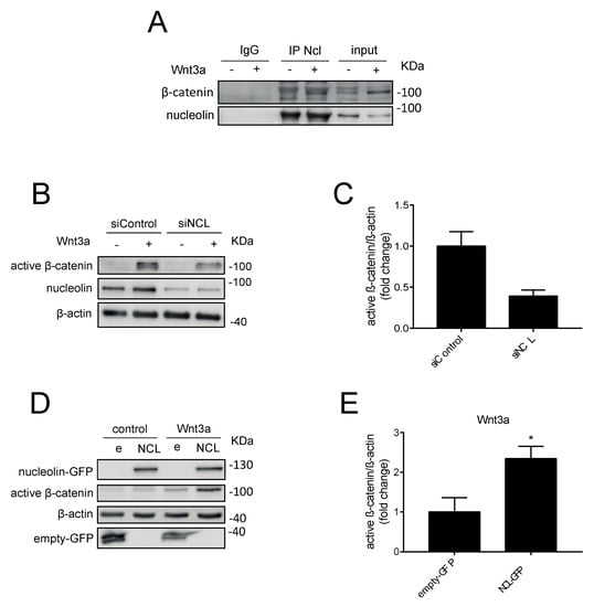 2.3. Nucleolin Promotes β-Catenin Stabilization under Wnt3A Stimulation