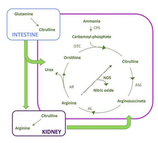 - Curis, E.; Crenn, P.; Cynober, L. Citrulline and the gut. Curr. Opin. Clin. Nutr. Metab. Care 2007, 10, 620–626. [Google Scholar] [CrossRef]