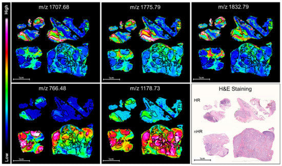 - Rauser, S.; Marquardt, C.; Balluff, B.; Deininger, S.-O.; Albers, C.; Belau, E.; Hartmer, R.; Suckau, D.; Specht, K.; Ebert, M.P.; et al. Classification of HER2 Receptor Status in Breast Cancer Tissues by MALDI Imaging Mass Spectrometry. J. Proteome Res. 2010, 9, 1854–1863. [Google Scholar] [CrossRef] [PubMed]