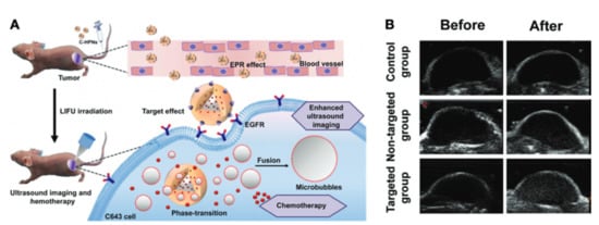 - Wang, Y.; Sui, G.; Teng, D.; Wang, Q.; Qu, J.; Zhu, L.; Ran, H.; Wang, Z.; Jin, C.; Wang, H. Low Intensity Focused Ultrasound (LIFU) Triggered Drug Release from Cetuximab-Conjugated Phase-Changeable Nanoparticles for Precision Theranostics against Anaplastic Thyroid Carcinoma. Biomater. Sci. 2018, 7, 196–210. [Google Scholar] [CrossRef]