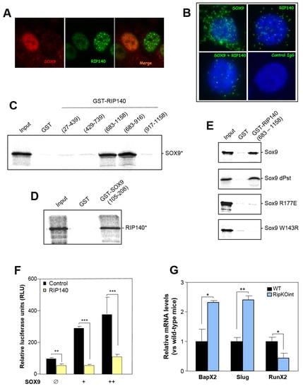 3.4. RIP140 Interacts with SOX9 and Represses Its Activity
