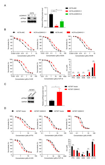 The effect of CDKN1C on sensitivity of HCT8 and HCT8/T cells to chemotherapeutic drugs.