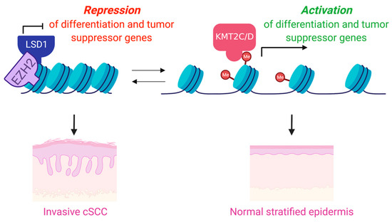 - Hernández-Ruiz, E.; Toll, A.; García-Diez, I.; Andrades, E.; Ferrandiz-Pulido, C.; Masferrer, E.; Yébenes, M.; Jaka, A.; Gimeno, J.; Gimeno, R.; et al. The Polycomb proteins RING1B and EZH2 repress the tumoral pro-inflammatory function in metastasizing primary cutaneous squamous cell carcinoma. Carcinogenesis 2018, 39, 503–513. [Google Scholar] [CrossRef]