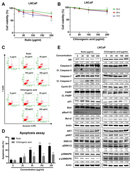 3.4. Rutin Is a Responsible Component of HCT to Induce Apoptosis in LNCaP Cell Lines
