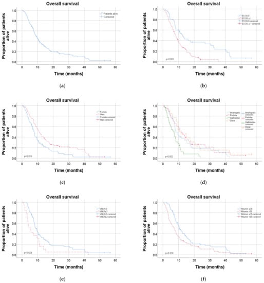 - Bridgewater, J.; Lopes, A.; Wasan, H.; Malka, D.; Jensen, L.; Okusaka, T.; Knox, J.; Wagner, D.; Cunningham, D.; Shannon, J.; et al. Prognostic factors for progression-free and overall survival in advanced biliary tract cancer. Ann. Oncol. 2016, 27, 134–140. [Google Scholar] [CrossRef]