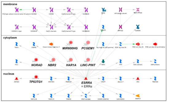 HAR1A was among a signature of nine other lncRNAs identified in TCGA of which the upregulation predicted recurrence in invasive BC [221]. Network analysis showed ERRα regulating HAR1A (Figure 9). No reports on ERRα regulating HAR1A in BC were found in PubMed.