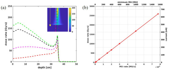- Esplen, N.; Mendonca, M.; Bazalova-Carte, M. Physics and biology of ultrahigh dose-rate (FLASH) radiotherapy: A topical review. Phys. Med. Biol. 2020, 65, 23TR03. [Google Scholar] [CrossRef]