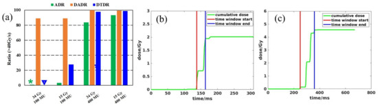 Recently, van de Water et al. [18] proposed a dose-averaged dose rate (DADR) method to evaluate the dose rate on proton PBS planning and treatment applications for head and neck patients. Based on the van de Water et al. method, here we calculate the DADR dose rate in Equation (1).
