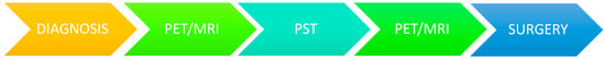 PET/MRI is a relatively new imaging tool, and its field of application is still being studied. It was introduced in 2011 in the USA and UE, offering the potential to combine the specificity obtained by the functional imaging of PET with the superior sensitivity of MRI, and provide relevant information of higher diagnostic accuracy [23]. In particular, the fully integrated PET/MRI system provides a simultaneous imaging acquisition [24].
