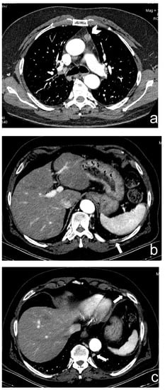 - Mazzei, M.A.; Gentili, F.; Volterrani, L. Dual-Energy CT Iodine Mapping and 40-keV Monoenergetic Applications in the Diagnosis of Acute Bowel Ischemia: A Necessary Clarification. Am. J. Roentgenol. 2019, 212, W93–W94. [Google Scholar] [CrossRef] [PubMed]