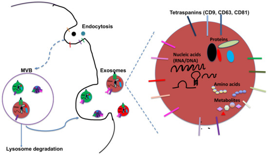 - Colombo, M.; Raposo, G.; Thery, C. Biogenesis, secretion, and intercellular interactions of exosomes and other extracellular vesicles. Annu. Rev. Cell Dev. Biol. 2014, 30, 255–289. [Google Scholar] [CrossRef]