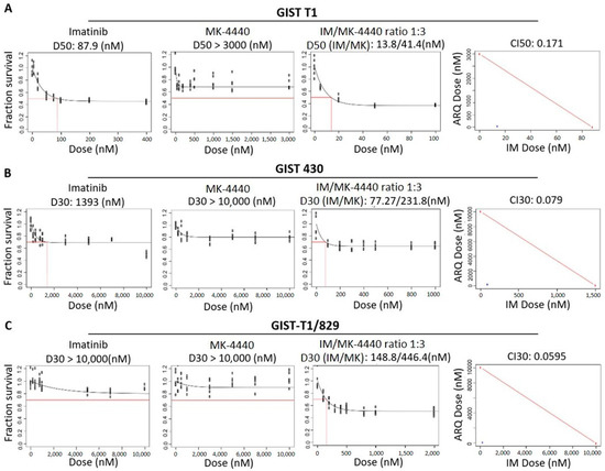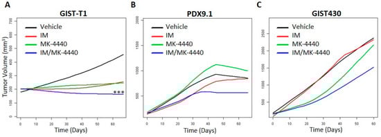 3.1. IM in Combination with MK-4440 Has Enhanced Viability on In Vitro GIST Cell Growth