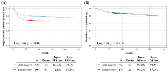 | Open surgery | 329 (62.9) | 352 (66.9) |
