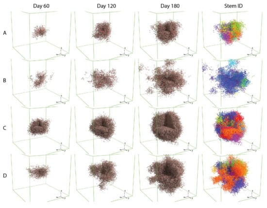 - Swat, M.H.; Thomas, G.L.; Belmonte, J.M.; Shirinifard, A.; Hmeljak, D.; Glazier, J.A. Multi-Scale Modeling of Tissues Using CompuCell3D. In Methods in Cell Biology; Asthagiri, A.R., Arkin, A.P., Eds.; Computational Methods in Cell Biology; Academic Press: Cambridge, MA, USA, 2012; Volume 110, pp. 325–366. [Google Scholar]