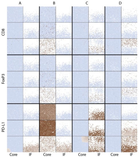 - Mi, H.; Gong, C.; Sulam, J.; Fertig, E.J.; Szalay, A.S.; Jaffee, E.M.; Stearns, V.; Emens, L.A.; Cimino-Mathews, A.M.; Popel, A.S. Digital Pathology Analysis Quantifies Spatial Heterogeneity of CD3, CD4, CD8, CD20, and FoxP3 Immune Markers in Triple-Negative Breast Cancer. Front. Physiol. 2020, 11. [Google Scholar] [CrossRef] [PubMed]
