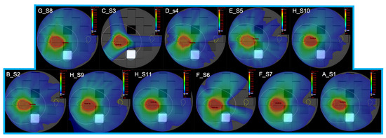 We evaluated 5088 and 10,176 dosiomic features to assess the reproducibility and stability of the extracted dosiomic features, respectively. Tables S1 and S2 show the CV values grouped by ROIs and features’ family for reproducibility and stability studies, respectively.