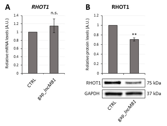 We demonstrated for lncMB1 a regulative role in the expression of its sense gene RHOT1. RHOT1 is implicated in an MYC-regulated gene network underlying mitochondrial trafficking, whose alteration has been recently considered as a hallmark of MYC-driven tumors [76]. In particular, it was demonstrated that the accumulation of mitochondria at the cortical cytoskeleton of tumor cells promotes cell invasion and metastasis [76]. It should be speculated that lncMB1 might be a novel component of this network in which MYC may control the essential component RHOT1 both directly and indirectly through the lncRNA.
