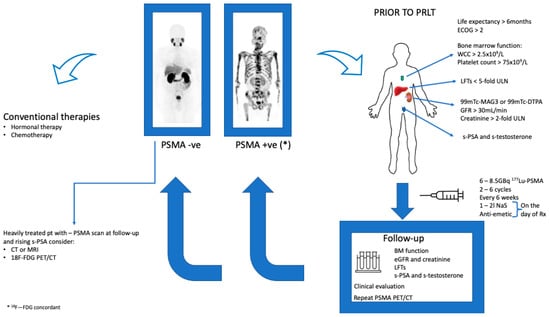 The European Association of Nuclear Medicine have published a guideline for PSMA radioligand therapy in patients with mCRPC. These guidelines provide a base for the harmonization of molecular based therapy with 177Lu-PSMA. Figure 2. Below is an algorithm for the therapeutic procedure as well as the follow-up of patients treated with 177Lu-PSMA.