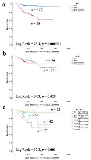 - Yu, D.; Shi, X.; Meng, G.; Chen, J.; Yan, C.; Jiang, Y.; Wei, J.; Ding, Y. Kidney-type glutaminase (GLS1) is a biomarker for pathologic diagnosis and prognosis of hepatocellular carcinoma. Oncotarget 2015, 6, 7619–7631. [Google Scholar] [CrossRef] [PubMed] [Green Version]